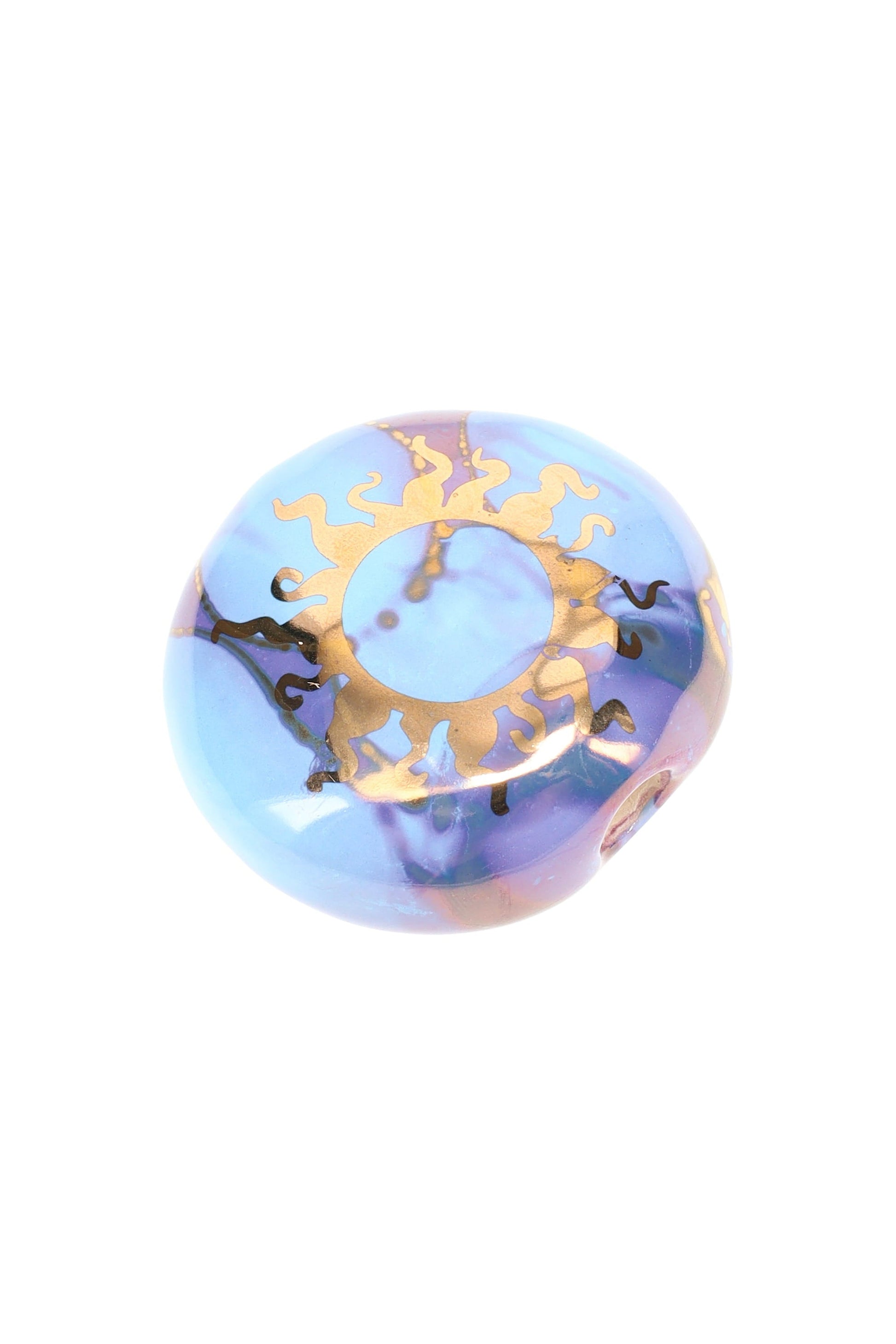 Small, smooth, and ready to chill—this palm-size ceramic smoke stone pairs a comfy grip with a radiant 22-karat gold sun design and glossy, food-safe glaze. Key Features & Specs