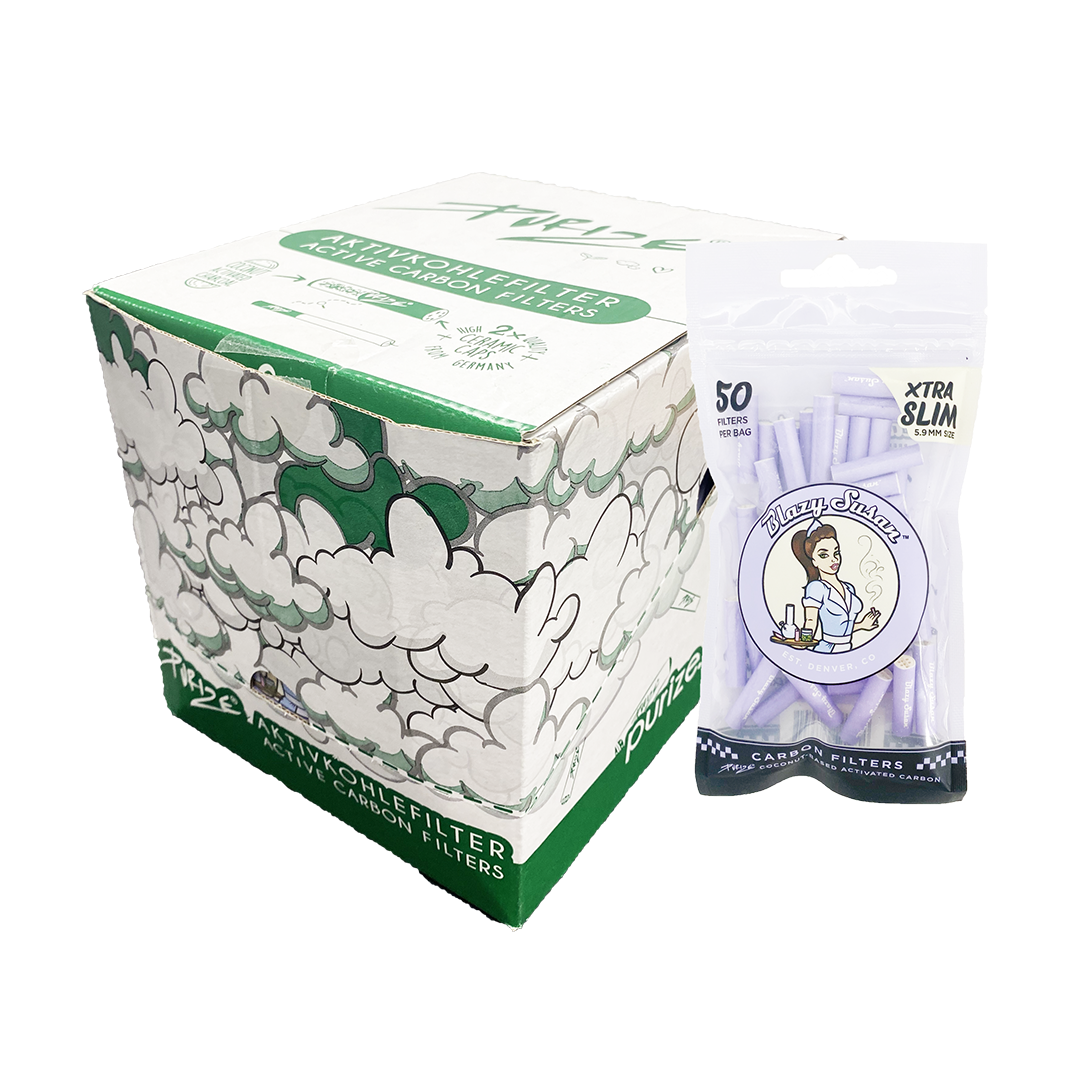Rolling just got easier with Blazy Susan Filter Tips! Elevate your smoking experience with these high-quality filter tips. The perforated tips, heat resistant ceramic caps, and coconut charcoal activation combine to offer a smooth and enjoyable smoking session. Available in Pink and Purple, these tips are a must-have for any rolling setup.