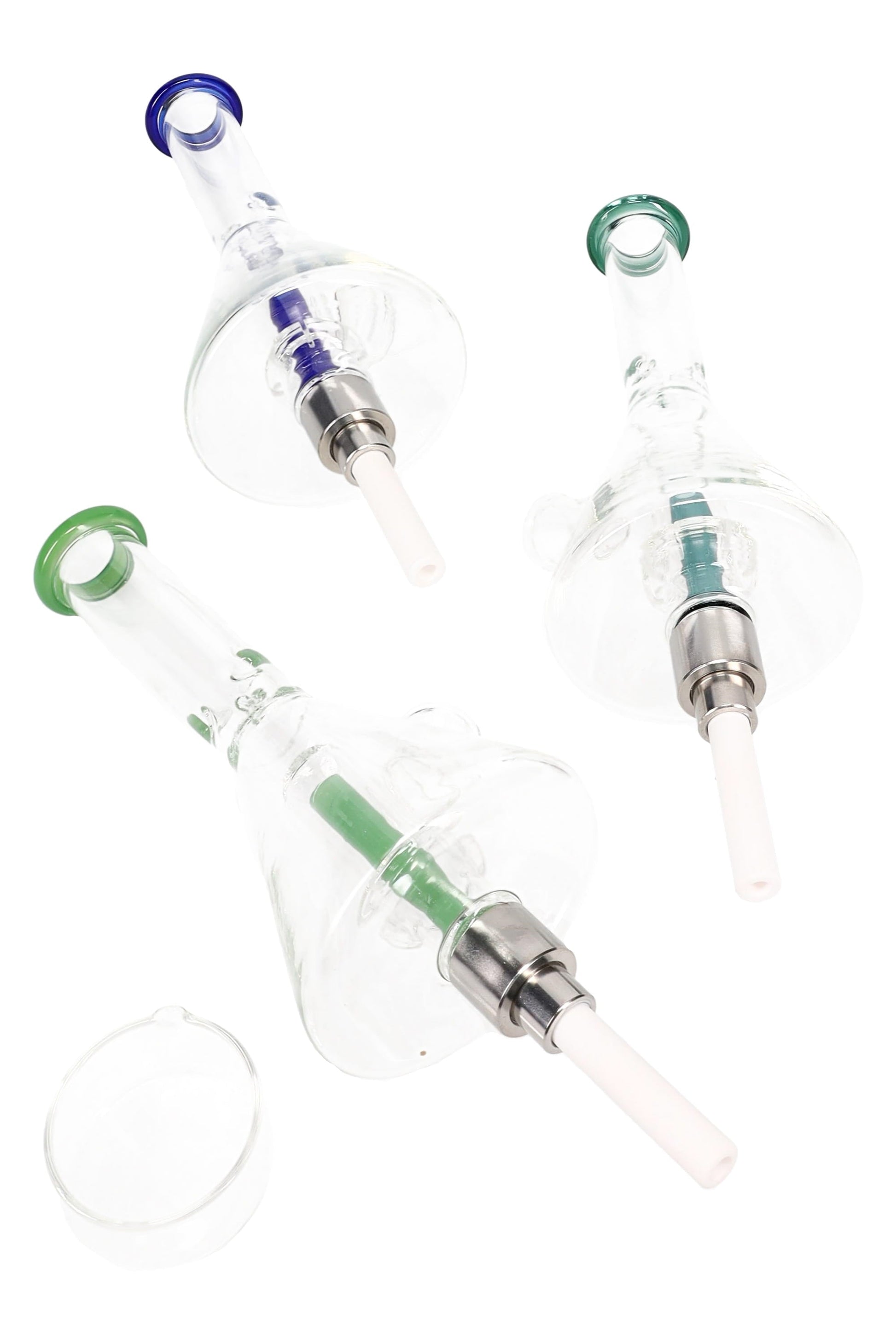 • Build: clear glass beaker body with colored accent sections and a comfortable flared mouthpiece.
